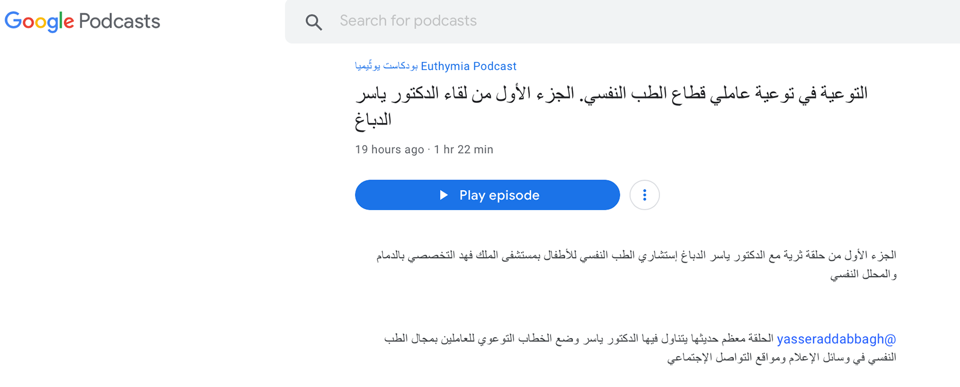 الجزء الأول من حلقة لپودكاست يوثيميا معظم حديثها يتناول وضع الخطاب التوعوي للعاملين بمجال الطب النفسي في وسائل الإعلام ومواقع التواصل الاجتماعي