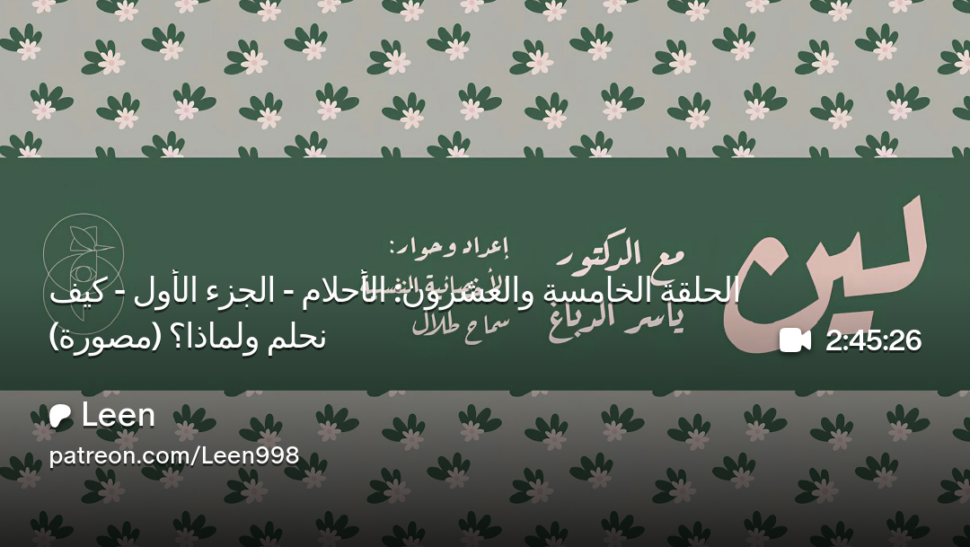 بالإمكان للمشتركين على منصة پاتريون، ابتداءً من الحلقة السابعة عشر، متابعة الحلقات مصورة بالكامل. اضغط هنا لمتابعة هذه الحلقة صوتاً وصورة ومشاهدة الحلقة المصورة قبل الجميع!ـ